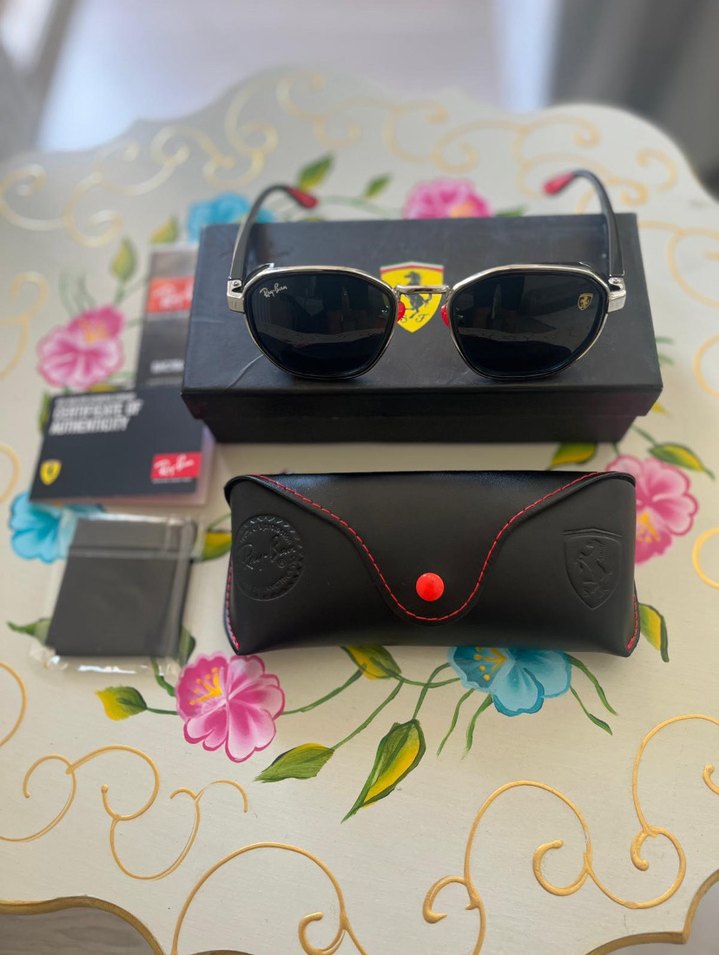 Renkli sokak stili etkisi taşıyan siyah Ray-Ban güneş gözlüğü, sağlam kılıf ve orijinal kutu ile birlikte.