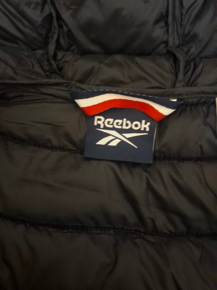 Siyah zemin üzerinde kırmızı ve beyaz şerit detaylı Reebok logosu bulunan rozeti, sokak stili için uygundur. ️