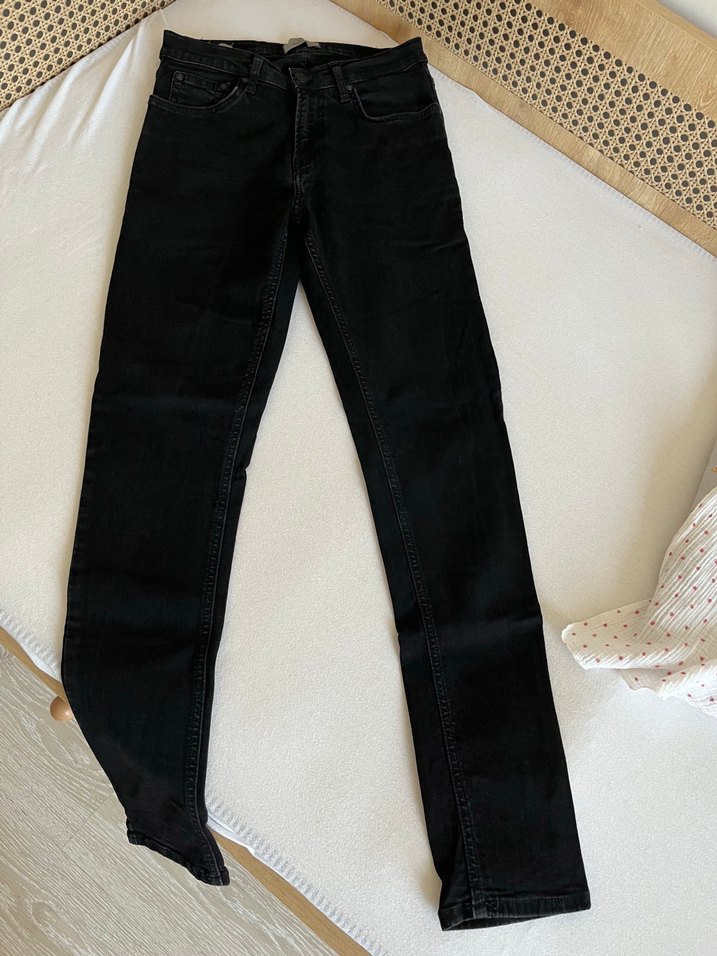 Siyah renkte, regular fit ve normal boyda bel kemerli denim erkek pantolon. Günlük kullanıma uygun sade ve desenizdir.