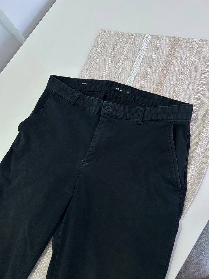 Siyah, regular fit erkek denim pantolon, midi boyda, günlük kullanıma uygun rahat ve şık bir tarza sahiptir. Hasarı yoktur