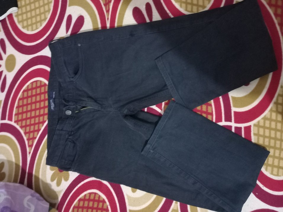 Düğmeli, siyah regular fit erkek denim pantolon. Sokak modasına uygun, günlük kullanım için dayanıklı ve desensiz kumaş.