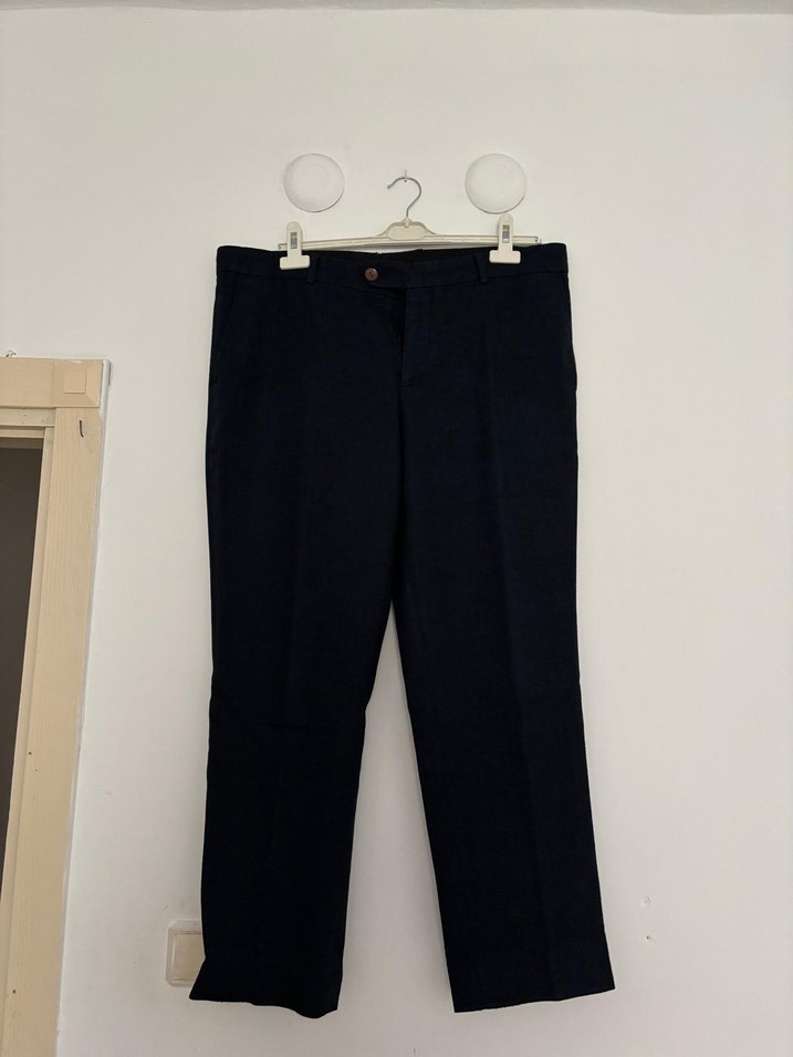 Siyah, regular fit, normal boy kumaş pantolon. Kemer detaylı, sentetik kumaştan üretilmiş, ofis ve günlük kullanım için uygun. 52 beden