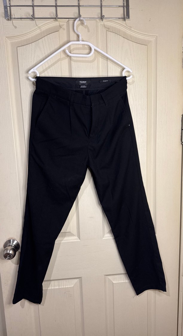Siyah, sentetik kumaştan yapılmış, regular fit kumaş pantolon. Sokak tarzı ve outdoor kullanım için uygundur, zahmetsiz şıklık sunar. Bedeni 29 gibi düşünebilirsiniz