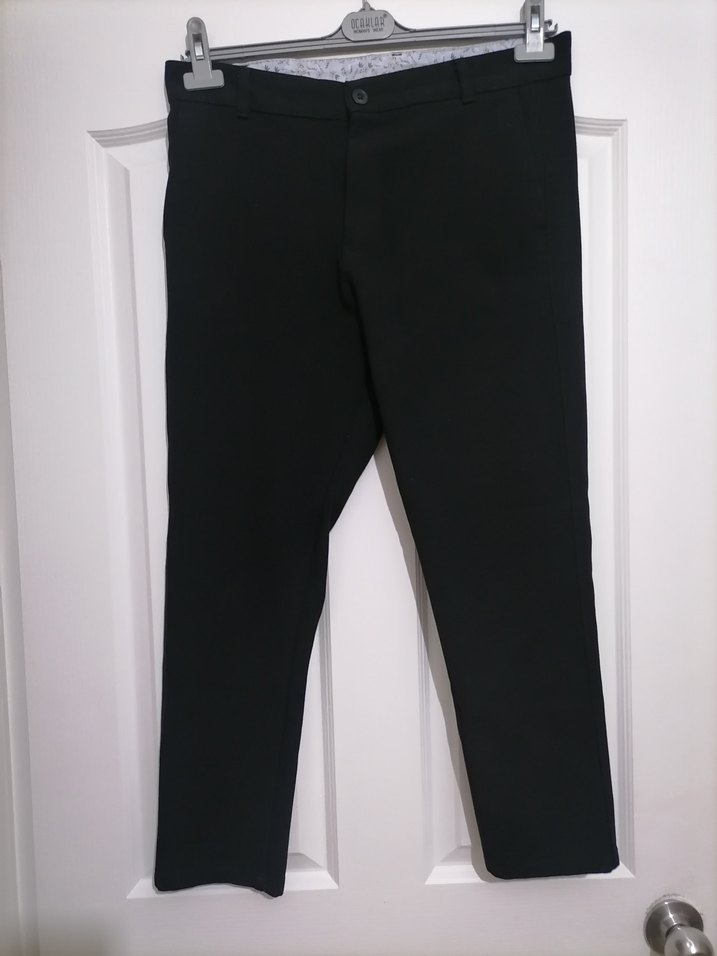 Siyah, regular fit, normal boy erkek pantolon. Pürüzsüz sentetik kumaştan, ofis için rahat ve şık bir tercih.