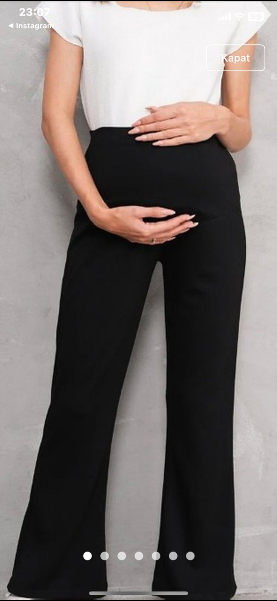Ofis için zahmetsiz şıklık sunan, ipeksi dokulu siyah regular fit hamile pantolonu. Desensiz midi boyda, çağdaş ve trend casual tarzda.