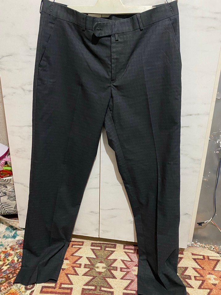Siyah, regular fit kesime sahip, kemerli erkek pantolonu. Pürüzsüz sentetik kumaştan üretilmiş olup ofis ve sokak modasına uygundur.