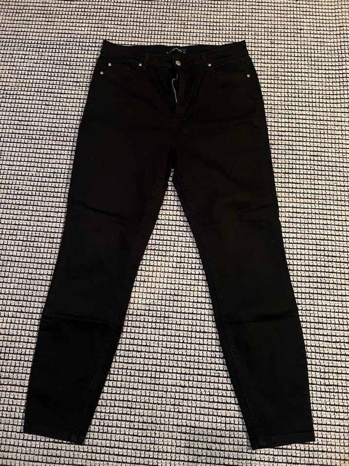Siyah, midi boy, regular fit kadın kot pantolon. Desensiz, günlük kullanım için rahat ve şık bir denim parça. Tertemiz renk solması hiç yok