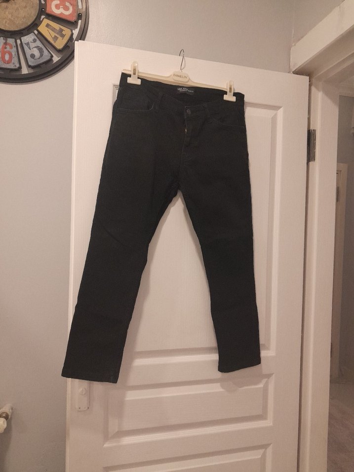Bu erkek kot pantolonlar regular fit ve normal midi boyda, koyu siyah denimden yapılmıştır. Günlük rahat sokak stili için desen içermeyen, şık ve zahmetsiz bir görünüm sunar.