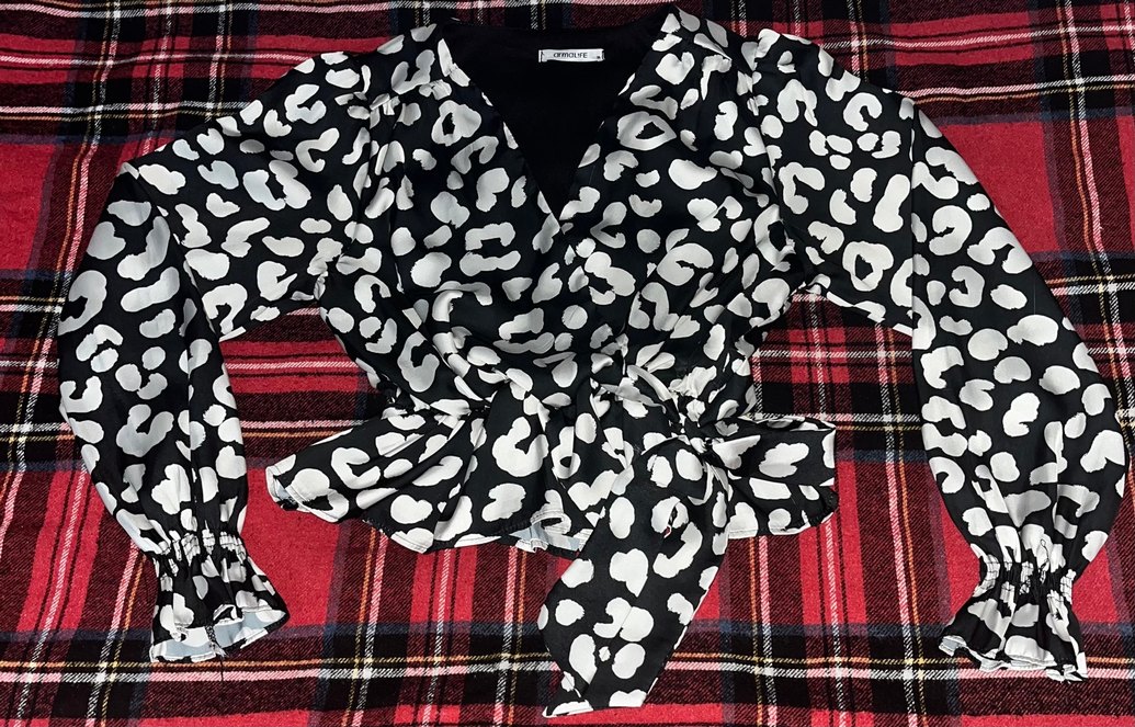 Siyah renk beyaz desenleri olan bluz