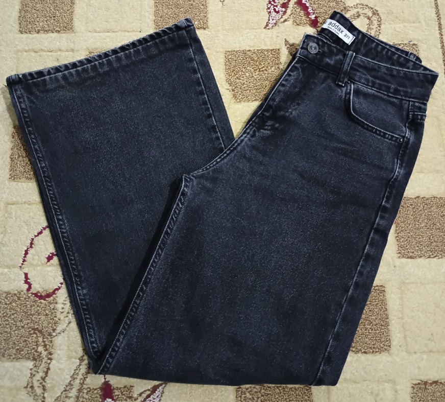 siyah renkte, rahat kesimli kot pantolon. Günlük kullanım için konforlu ve zahmetsiz şıklık sunar. boyum 162, kilom 49 benim üzerimde bu şekilde duruyor, bana sadece bel kısmı çok azcık bol geliyor ben kemerle kullanıyordum pantolonu belim ince olduğu için, addaxtan almıştım.