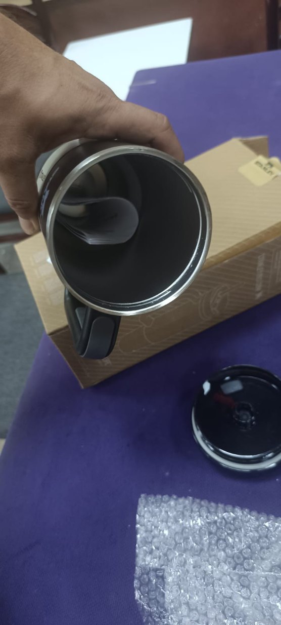 siyah renkli, kapaklı termos kupa. İç kısmı dayanıklı paslanmaz çelikten yapılmıştır, içeceklerin soguk sıcak kalmasını sağlar.