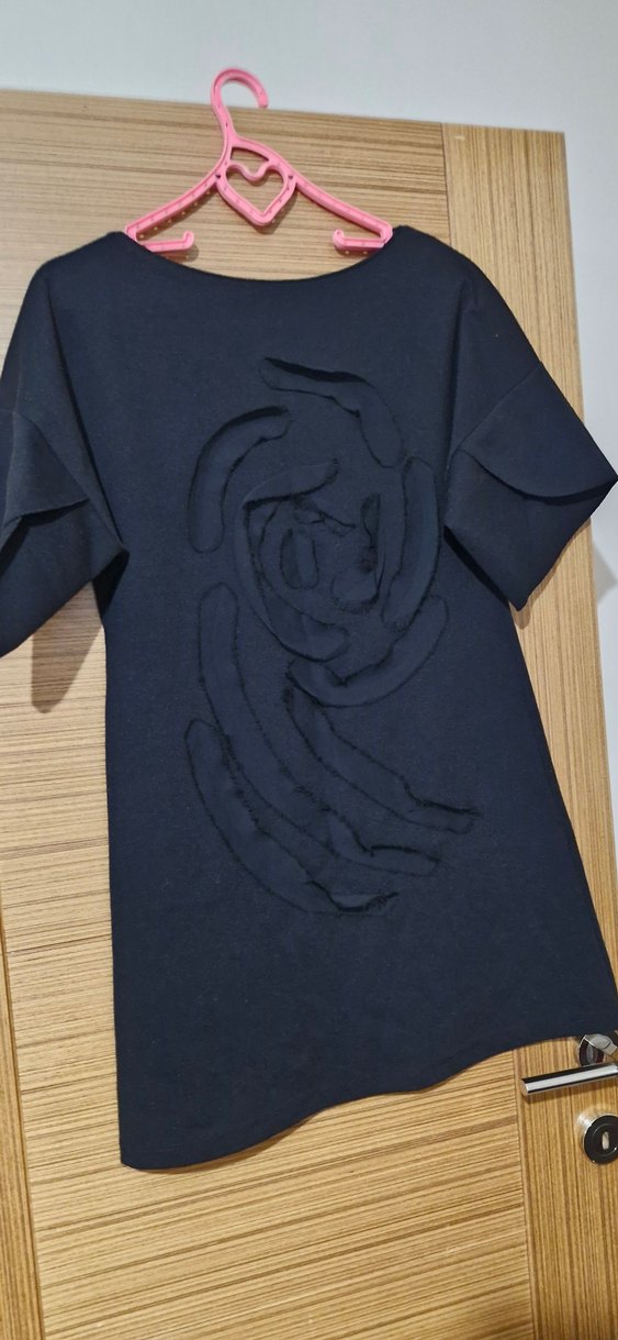 Siyah renkte, yuvarlak yaka ve Fırfır detaylı, baskılı ve bol kesimdir. Günlük kullanıma uygundur.