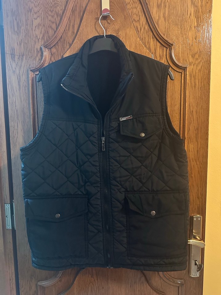 Siyah renkte, büyük cepli, yelek. Yumuşak ve içi polar kumaştan. İçinde hafif tüylenme mevcut. Etikette S beden görünüyor ancak gerçekte M bedendir, 40-42 bedene rahat olur. Kol altı: 54 cm Ense - etek boyu: 70 cm