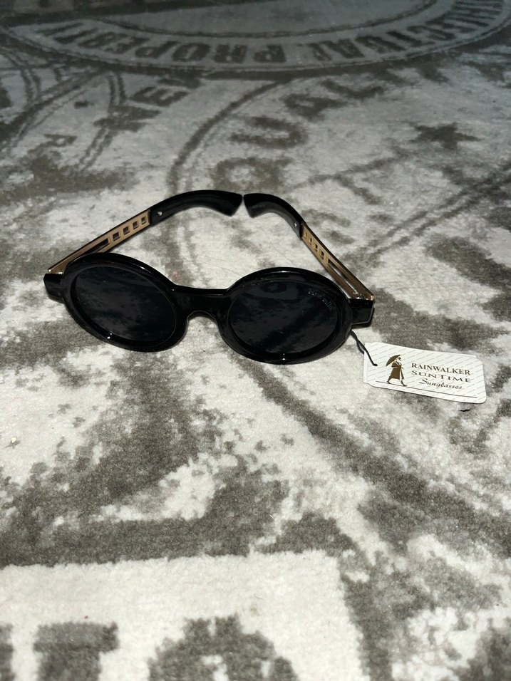 Siyah retro güneş gözlüğü, koyu çerçeve ve oval camlarla bohem ve karşı kültür tarzını yansıtıyor. ️