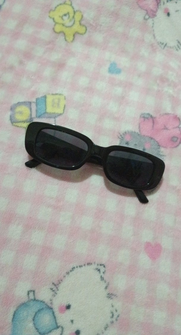 Şeffaf çerçeveli siyah dikdörtgen güneş gözlüğü, koyu gotik tarzda, bohem ve hippie görünüm için uygun. ️