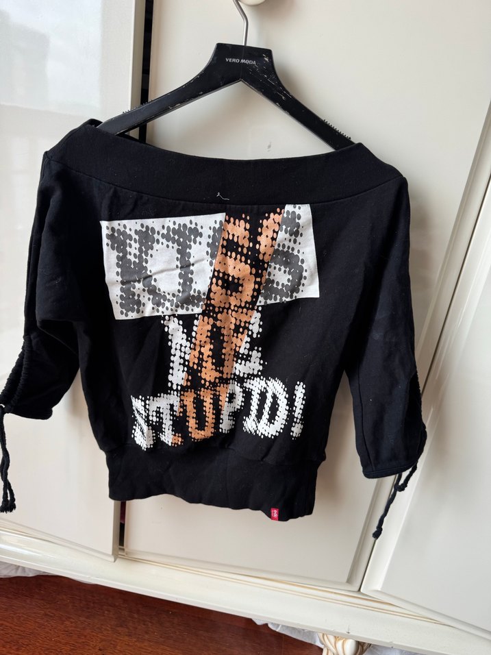 Uzun kollu, yuvarlak yakalı, düğmeli ve baskılı siyah hamile tişörtü. Rahat kesimi ve sokak stili detaylarıyla günlük kullanım için uygun.