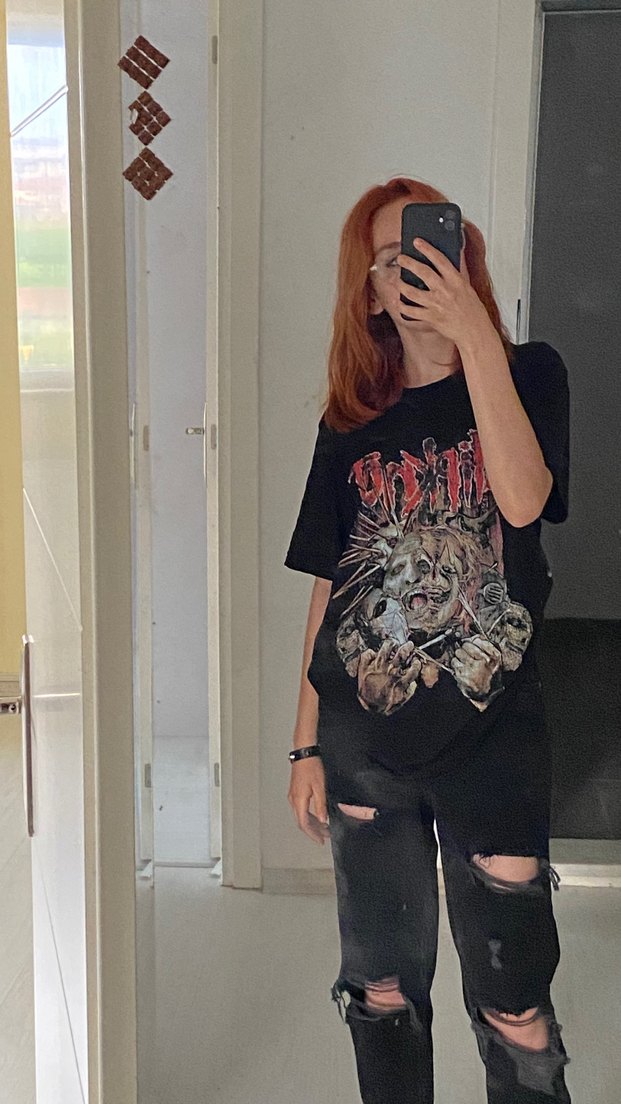 Siyah renkli, kısa kollu, bol kesim rock punk kadın tişörtü. ve normal boyda, rahat ve şık bir görünüm sunar. Günlük kullanım için uygundur.