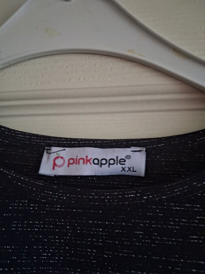 Pink Apple markalı, uzun kollu, yuvarlak yakalı ve elastik yapılı siyah baskılı, kadın tunik günlük kullanım için uygundur.