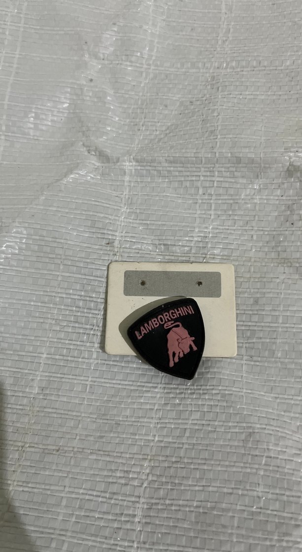 Koyu tonlarda Lamborghini logosu bulunan siyah rock punk rozeti, grunge punk tarzına uygundur.