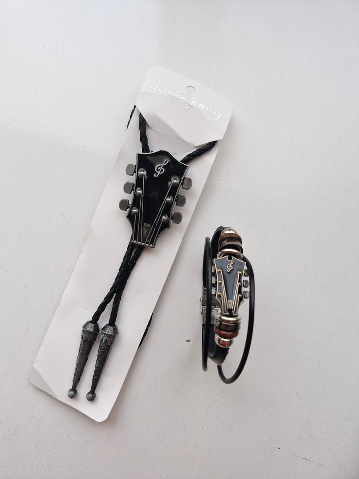 Gitar severler için ikili takım takı. Kolye/Kravat olarak kullanılabilen gitar motifli taki ve yanında gitar motifli bileklik bulunmaktadır. #Gitar #Kolye #Kravat #Müzik #Bileklik
