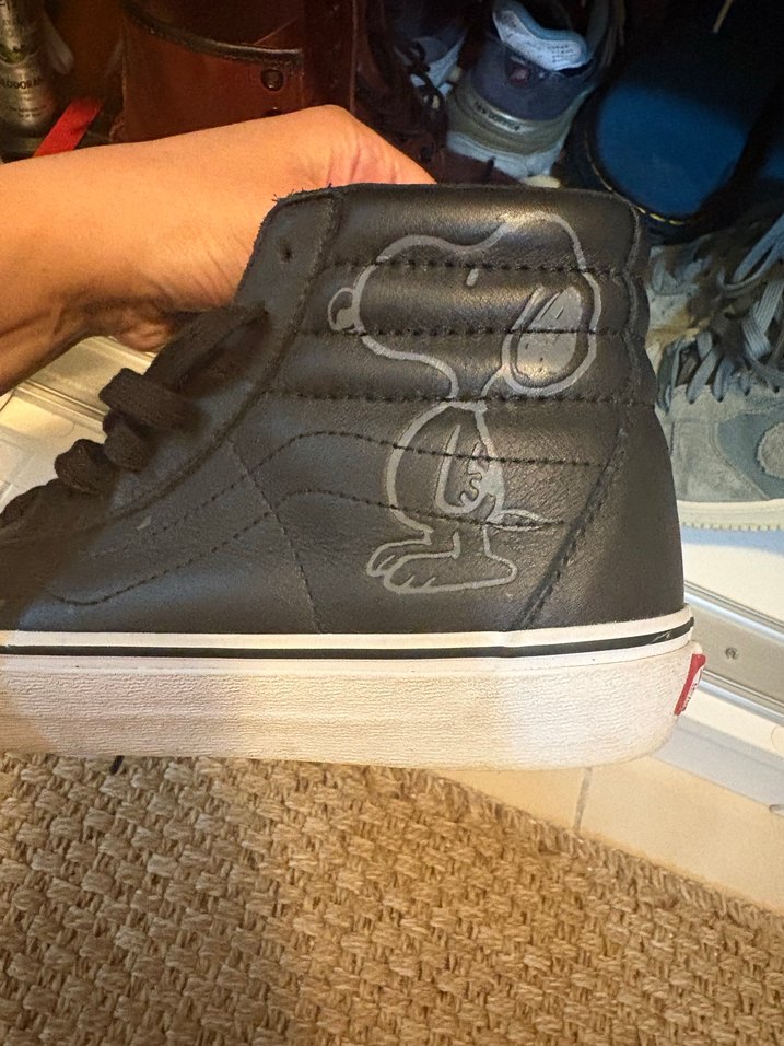 Gerçek deri, baskılı Snoopy desenli, günlük kullanım için uygun rock punk tarzı bot. 2 kere giyildi yepyeni. Limited edition üretim.