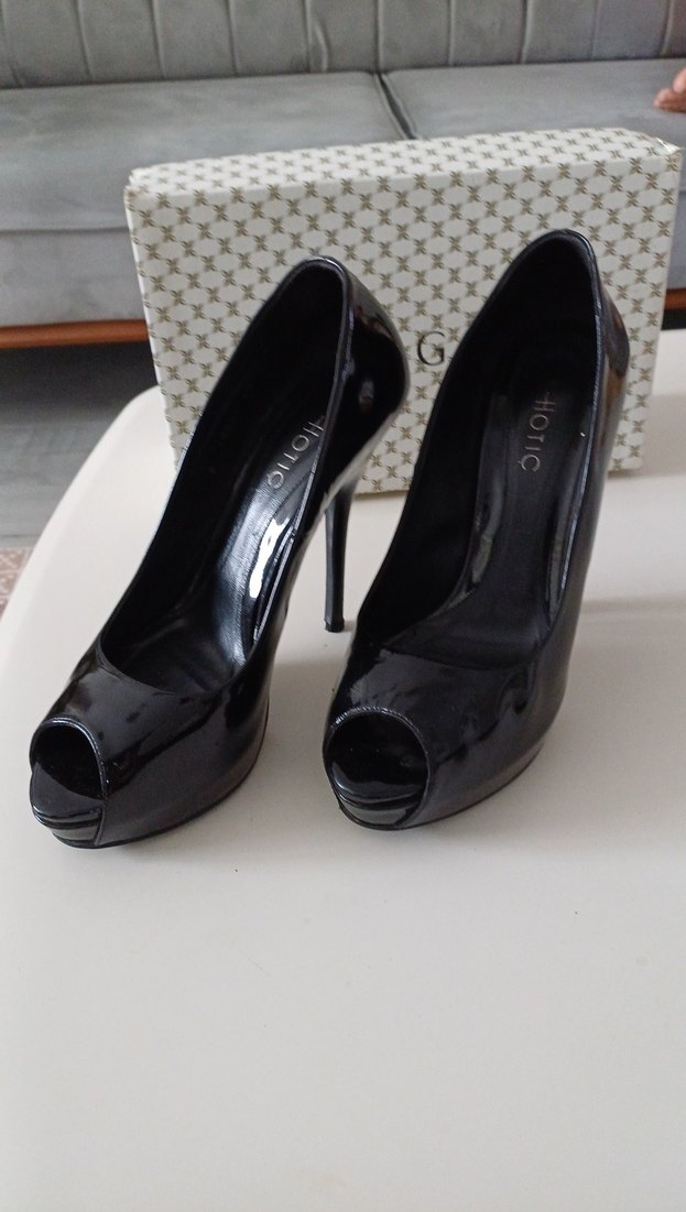 Siyah rugan, açık burunlu yüksek topuklu kadın ofis ve gotik şıklık için uygun. akşam yemekleri ve düğünler için uygun.