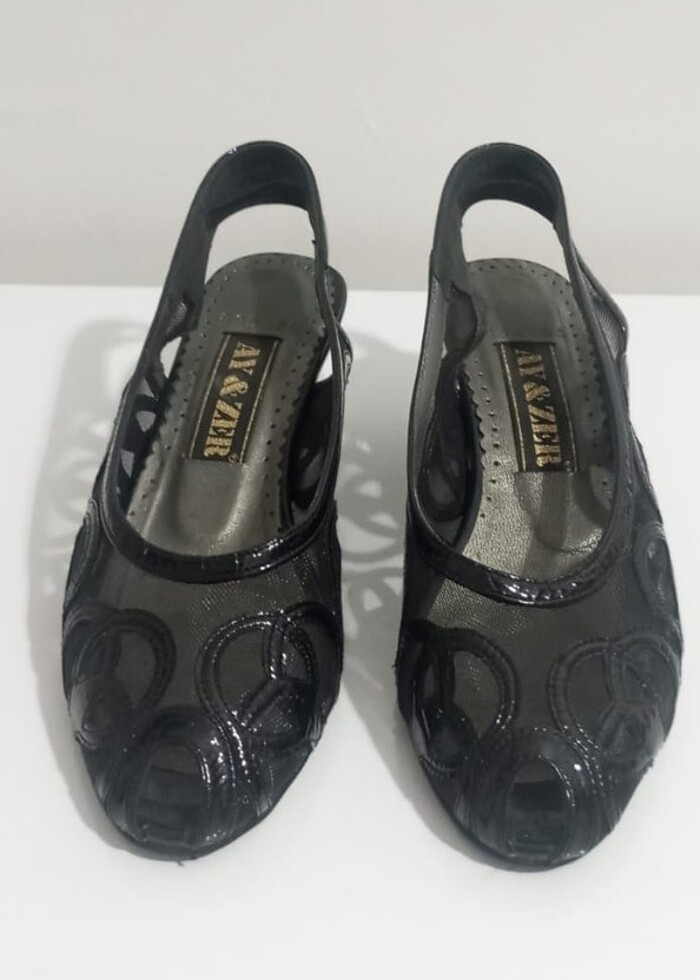 Siyah, 1 kez giyilmiş, 36 numara, 5 cm dolgu topuklu, rugan deri, ayakkabı. 250 TL