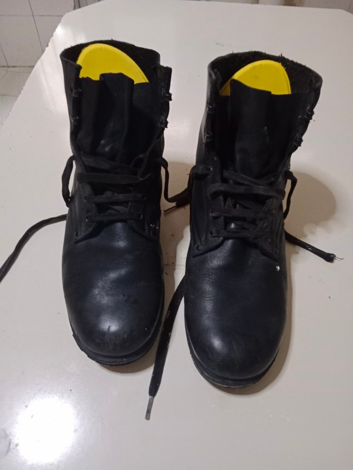 Siyah kauçuk malzemeden, bağcıklı ve tokalı, rock punk tarzında, günlük kullanıma uygun erkek botu.