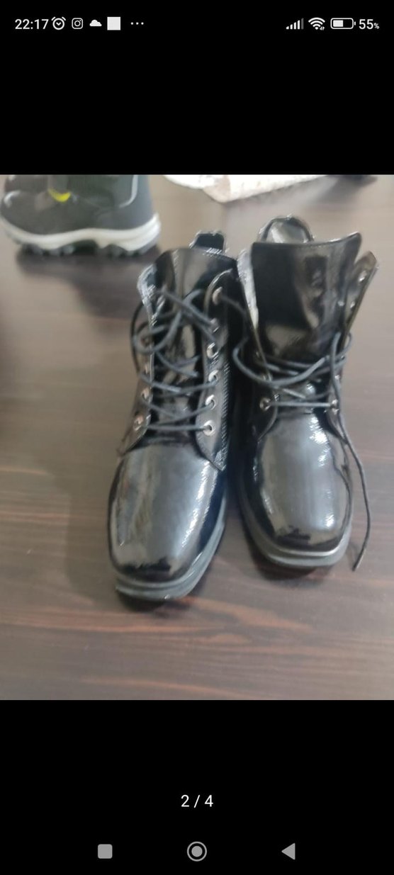Siyah rugan malzemeden yapılmış, bağcıklı ve tokalı stiletto topuklu bot. Gotik tarzıyla dikkat çeker, günlük kullanıma uygundur.