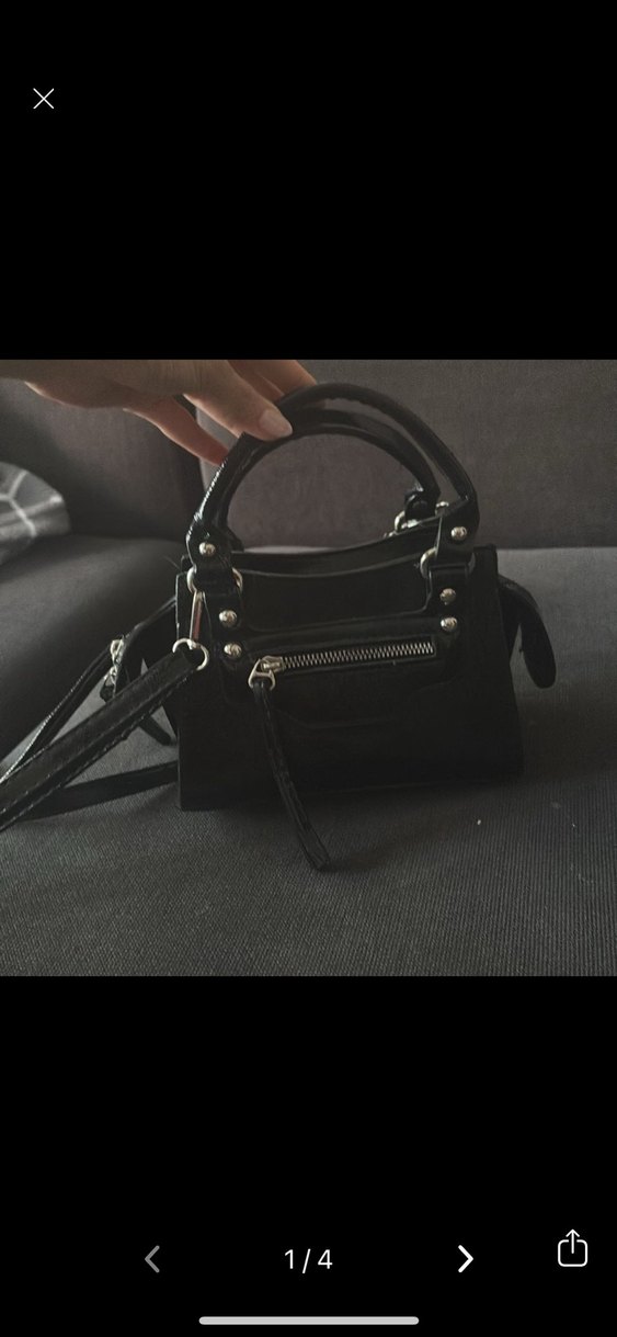 Siyah deri, tokalı detaylara sahip goth tarzı Parisli rock punk havasında kadın çantası. Desensiz ve günlük kullanıma uygun. Muadildir. Nokta kadar bir renk değişimi var ancak görünmüyor pek 3. Fotoğrafta yakınlaştırıp bakabilirsiniz