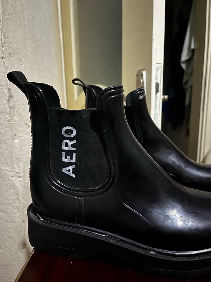 Siyah rugan görünümlü kauçuk botlar minimalist ve gotik tarzda günlük kullanıma uygun şık bir model.
