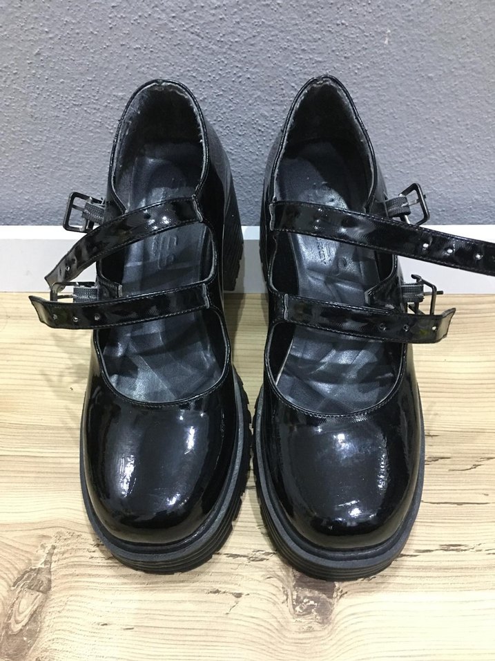 Siyah rugan, çift tokalı platform topuklu ayakkabılar. Gotik tarzda, rock punk havasıyla günlük kullanıma uygun. Ayakkabı yeni durumda tek bir kere giydim bana küçük geldi. 37-37,5 numaraya daha iyi olur düşünüyorum. Yada ince ayak 38 numara için olur. Topuk boyu 7,5 cm. Çok kaliteli ve rahat ayakkabı. Fiyatın altında çok düşük fiyata satıyorum