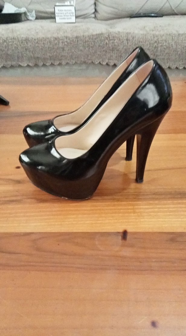 Siyah Rugan Platform Topuklu Kadın Stiletto