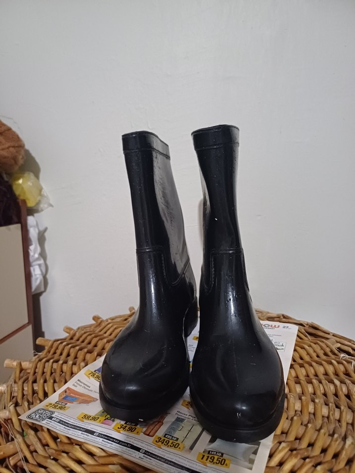 Siyah Rugan Stil Yağmurluk Kadın Bot