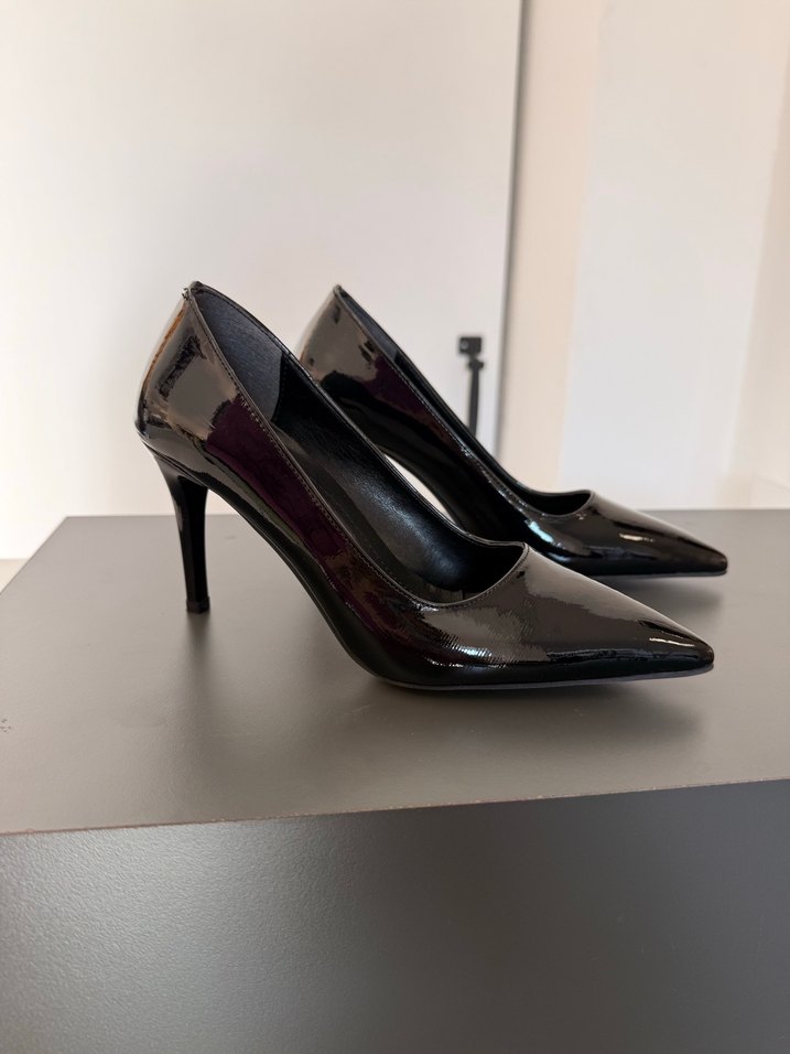 Siyah parlak yılan desenli, kauçuk malzemeden yapılmış stiletto topuklu, ofis için cesur iş tarzına uygun. Ürün sıfırıdır. 36-37-38-39 numaraları mevcuttur. İstediğiniz numara için mesaj atın ilan açayım #stiletto
