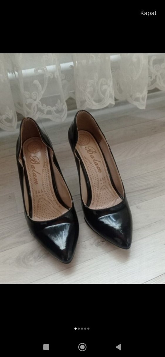 Siyah rugan, yılan deseniyle parlak stiletto topuklu ayakkabı. Ofis kullanımı için klasik ve gotik tarzda.