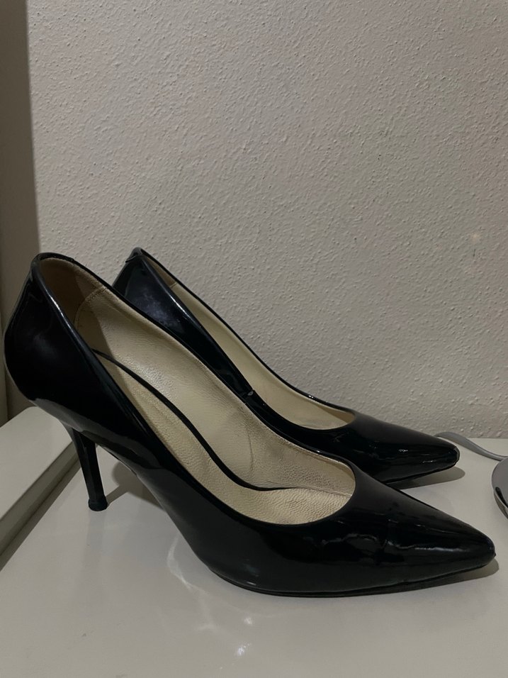 Siyah Rugan Stiletto Topuklu Kadın Ayakkabı