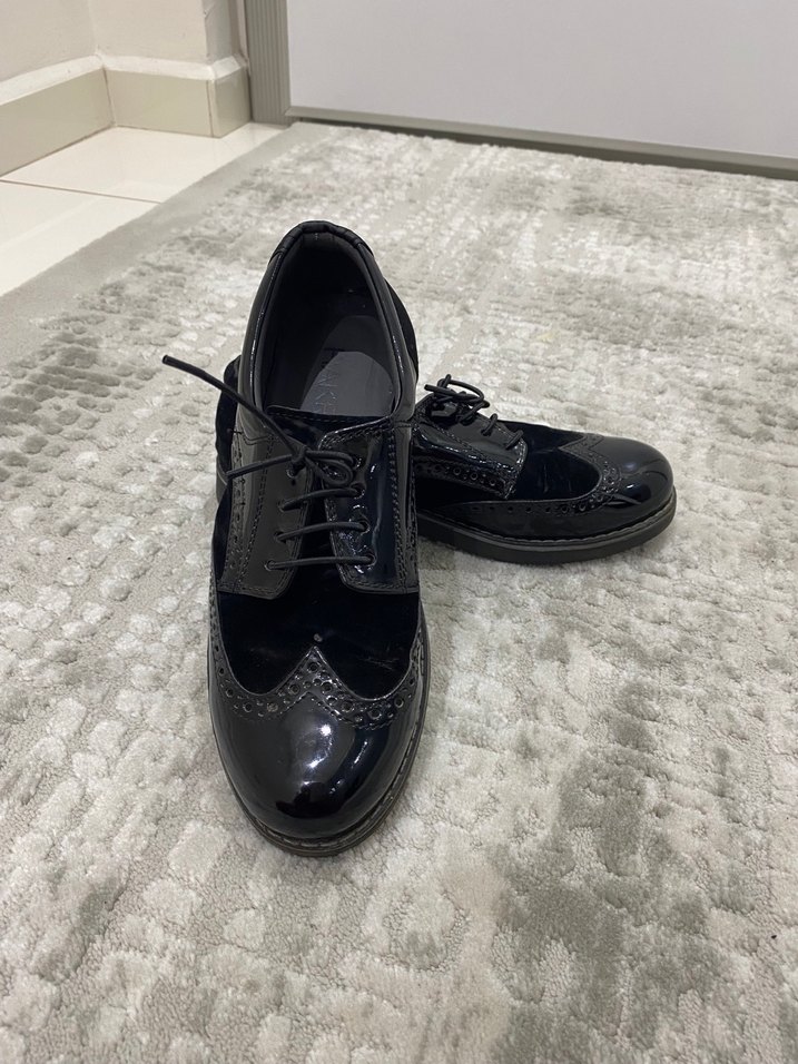 Siyah rugan klasik ayakkabılar, stiletto topuklu ve kürk detaylı, desen içermeyen şık tasarımıyla ofis kullanımı için uygundur. Markasi zara degildir ozel gunde 1 defa giyildi tum kusurlari gorsellenmistir.