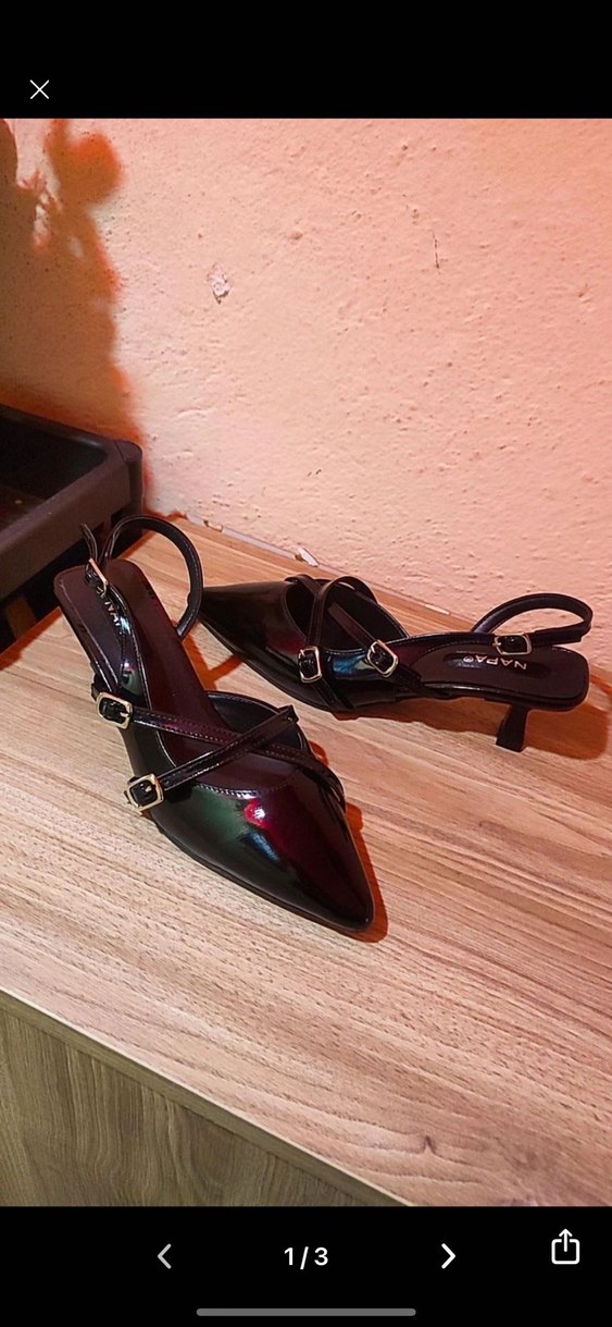 Siyah rugan malzemeden yapılmış, tokalı ince topuklu klasik gotik stile sahip kadın ayakkabısı. Romantik akşamlar için uygun, desensiz tasarım. Marka temsilidir