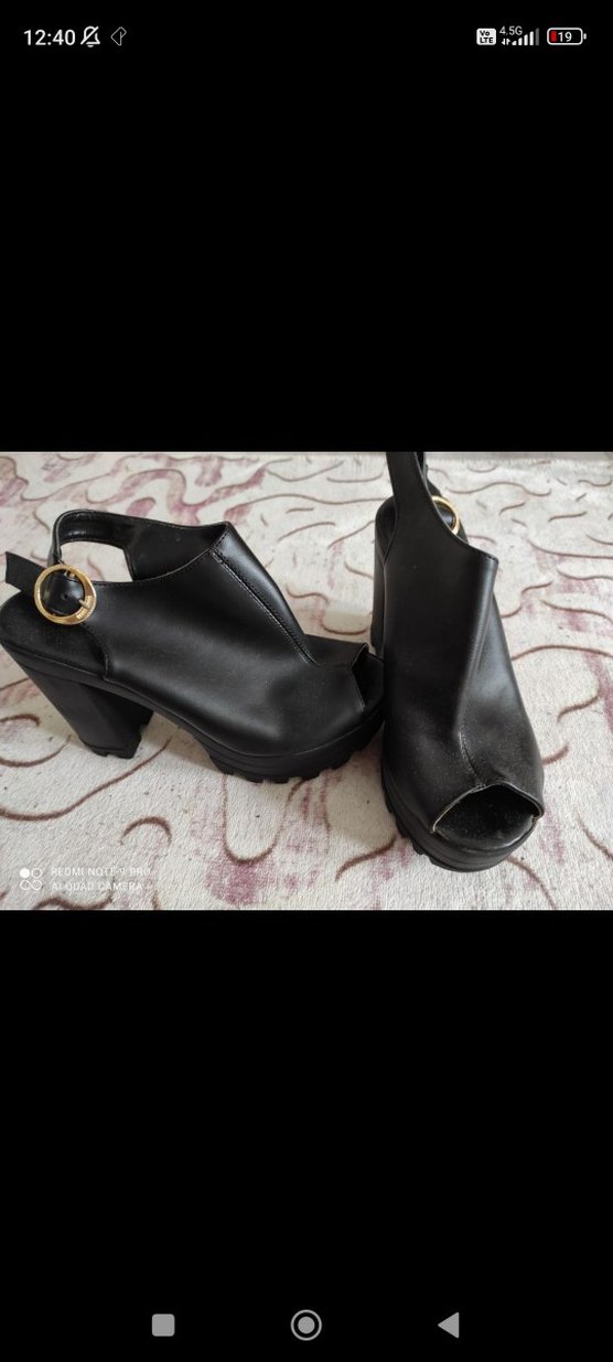 Siyah parlak platform topuklu, tokalı günlük olarak da kullanılabilen şık ayakkabı.Sayılı kullanıldı.