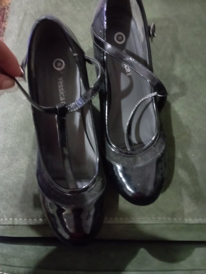 Klasik gotik tarzda, tokalı kayışlı siyah rugan stiletto. Ofis kullanımı için uygun, parlak ve desensiz model.