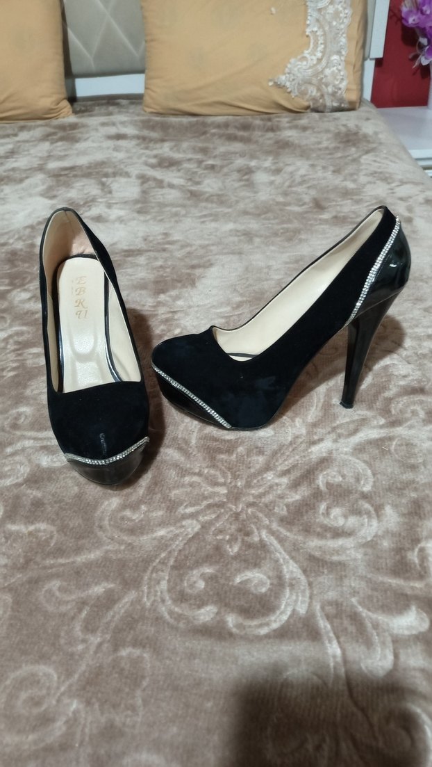 Siyah rugan yılan desenli stiletto topuklu ayakkabılar, taş süslemeleriyle ofis kullanımı için uygundur. Dayanıklı kauçuk malzemeden üretilmiştir.