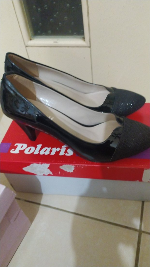 Parlak siyah topuklu stiletto, klasik gotik iş tarzı için uygun. Marka: Polaris.