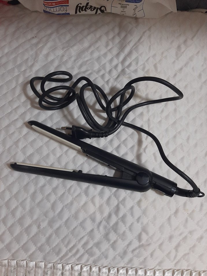 Uzun kablolu siyah saç düzleştirici, saç şekillendirmek için kullanışlı ve pratik bir üründür.
