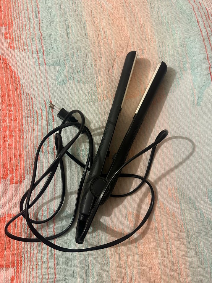 İnce seramik plakalı ve uzun kablolu siyah saç düzleştirici. Günlük saç düzleştirme için uygundur. ✨