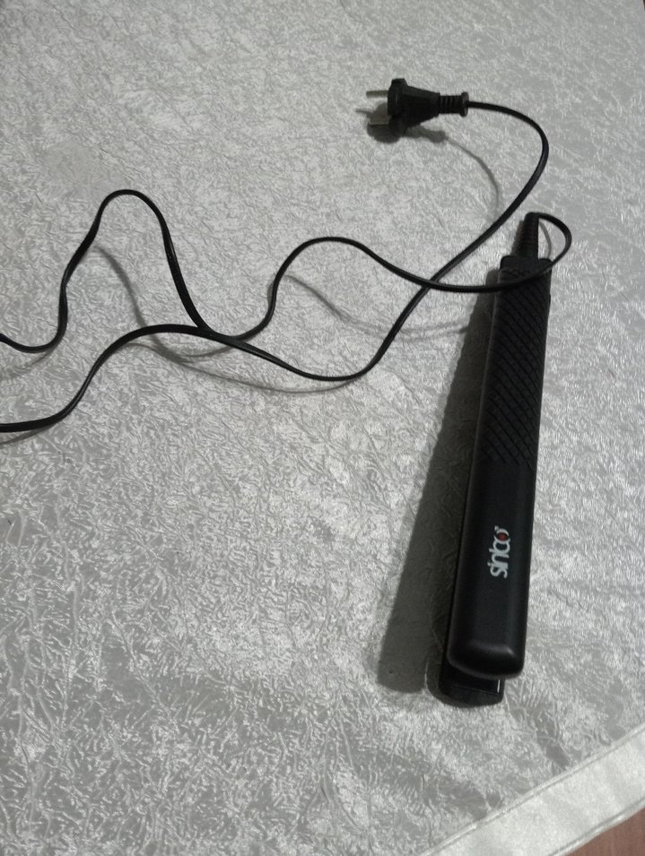 Siyah renkli, kablolu saç düzleştirici. Saçları düzleştirmek için kullanılır, şık ve kullanışlı tasarıma sahiptir.
