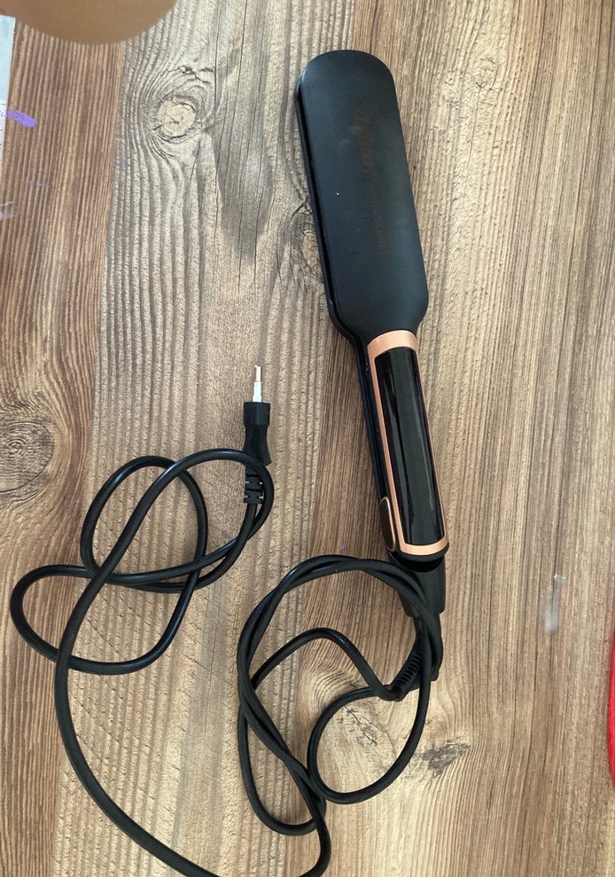 Uzun kablolu siyah saç düzleştirici, şık tasarıma sahip ve saçları kolayca düzleştirmek için uygundur.