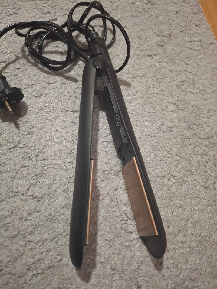 Siyah saç düzleştirici, pürüzsüz ısıtma plakaları ve ayarlanabilir sıcaklık seçenekleri ile saç şekillendirme sağlar.
