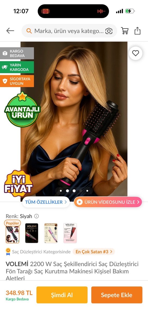 Siyah saç düzleştirici fırça, saçları düzleştirirken hacim kazandırır ve kullanım kolaylığı sağlar. Hızlı şekillendirme için uygundur. ✨