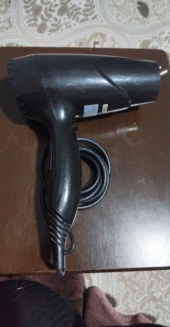 Kompakt tasarımlı siyah saç kurutma makinesi, rahat tutuşlu ve uzun güç kablolu, etkili kurutma sağlar. ♂️ sadece biraz sesi cızırtılı